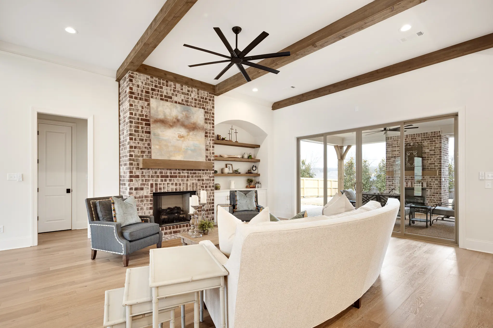 This home’s design features include sliding doors to the rear porch, stained cedar beams in the family room, a variety of polished and mosaic tiles, and detailed trim work throughout. Schedule your tour with our Online Sales Counselor!